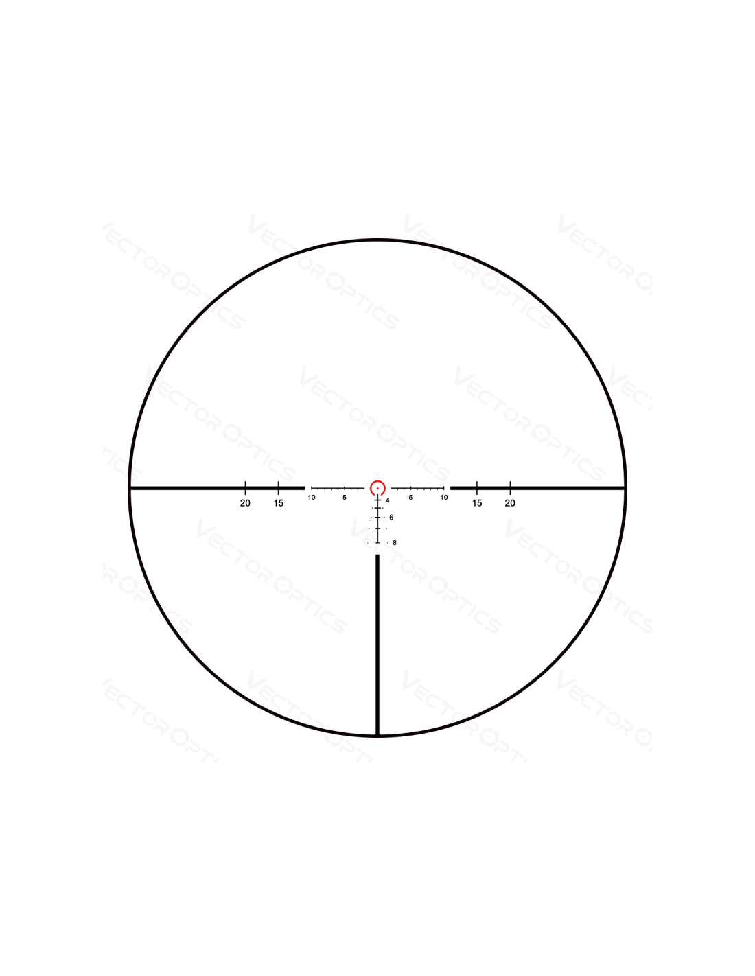 - Degagement oculaire constant de 4" sans anneau sombre interieur autour de l'image, reticule VEC-T6M BDC en verre grave.